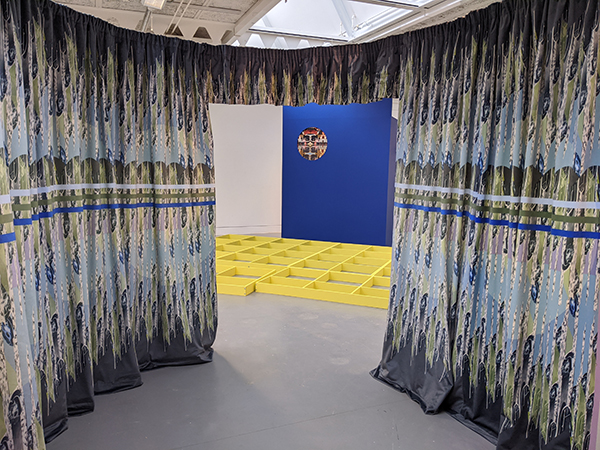 “Theatrical references, such as curtains, sets and stages, have been used to transform the gallery space, as the artists explore the ways in which the architecture and contents perform,” explained Georgie.